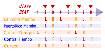 慣れてくるとクラーベにのって踊るのがどんなに気持ちのいいことかがわかってくるよ。ためしに、クラーベのはっきりしている曲を聞きながらやってみてください。絶対気持ちよくなってくるから。ちなみに、チャチャチャもクラーベにのって踊るので、一般的には1,2,チャチャチャと踊りますが、音楽的には1,2,3,チャチャチャと踊るのが正解。もちろんNYスタイルは1,2,3,チャチャチャと踊ります。